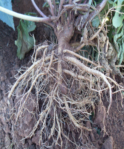 图2 滇重楼根腐病地上部分表现和地下部分表现